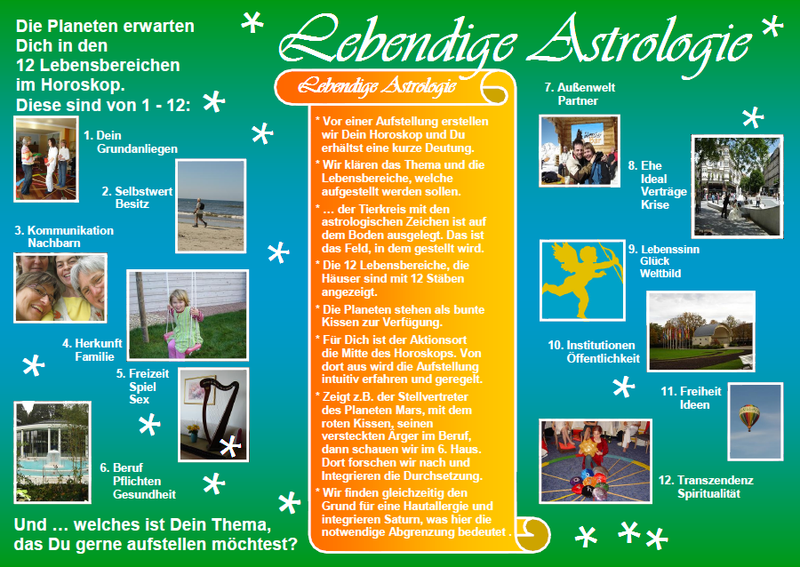 Lebensbereichen und Planeten, wie sie in Deinem Horoskop abgebildet sind. Deine Fragen dazu sind willkommen.