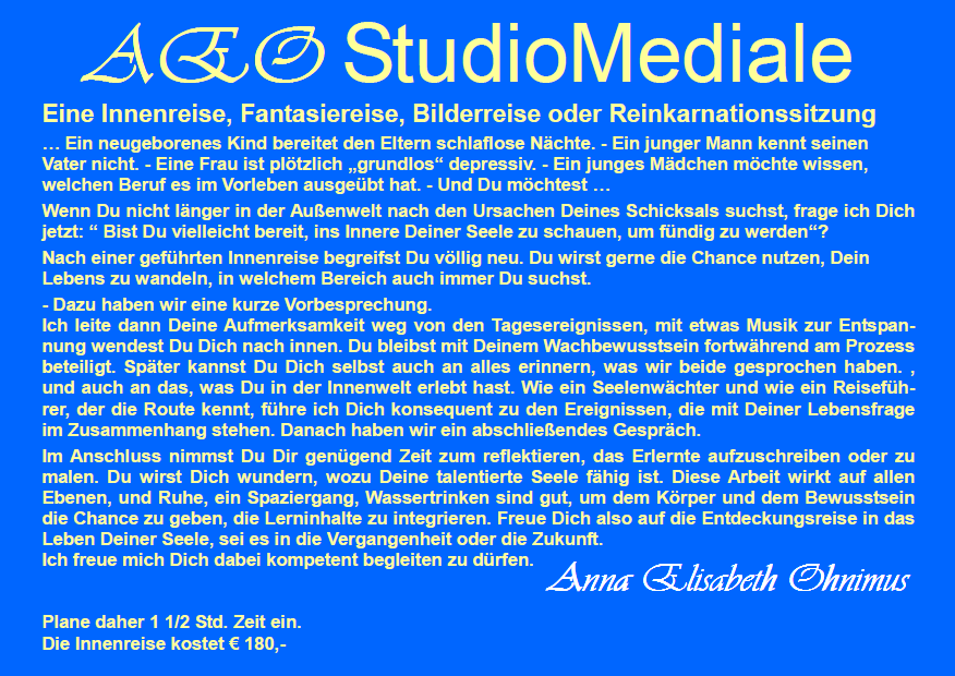 Reinkarnationssitzung * 1 1/2 Std. * Beitrag € 180.-,
